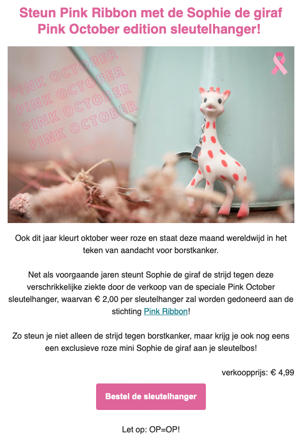 Sophie de giraf in actie voor Pink Ribbon!